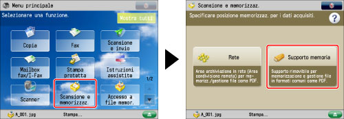 Premere [Scansione e memorizzaz.] → [Supporto memoria].