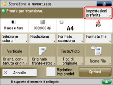 Premere [Scansione e memorizzaz.] → [Supporto memoria].