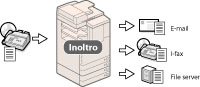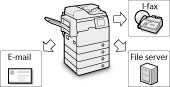 Con estrema semplicità è possibile scansionare i documenti cartacei e inviarli a uno o più destinatari tramite e-mail o I-fax. In tal modo lo scambio dei documenti sarà più efficace e il luogo di lavoro risulterà più efficiente. È possibile inviare documenti anche a file server FTP, SMB e WebDAV, facilitando le operazioni di digitalizzazione dei documenti cartacei e rendendo più comodo l'accesso ai dati e la loro gestione.