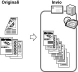 Documenti fronte-retro, libri e altri tipi di originali possono essere acquisiti e inviati esattamente come con la funzione Copia. È possibile impostare l'esposizione e il formato di scansione affinché coincidano con il tipo di originale acquisito. Inoltre, è possibile memorizzare le impostazioni di scansione preferite e richiamarle in qualsiasi momento.