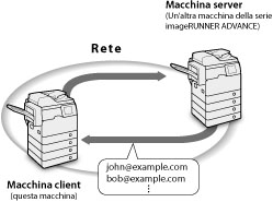 La macchina può accedere a un server in rete quale macchina client in grado di cercare/specificare le destinazioni dalla rubrica della macchina server.