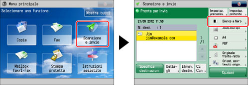 È possibile registrare un modo colore desiderato come impostazione predefinita modificando le impostazioni di scansione predefinite. (Vedere "Modifica delle impostazioni predefinite per l'invio".)