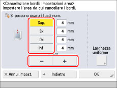 Premere [Centro] e [Lati] → premere [-] o [+] per impostare le singole larghezze dei bordi da cancellare.