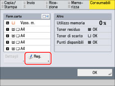 La tabella seguente indica la quantità residua dei materiali di consumo.