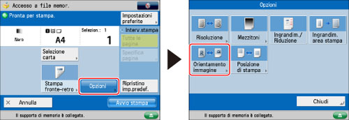 La macchina confronta automaticamente l'altezza e la larghezza dell'immagine e stampa le immagini ampie in orizzontale.