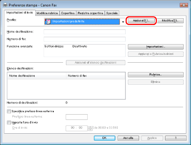Per modificare o cancellare un profilo, fare clic su [Modifica] a destra di [Profilo] nella scheda [Impostazioni di invio], [Copertina] o [Speciale].
