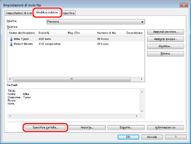 Fare clic su [Modifica rubrica] → [Specifica cartella].