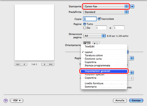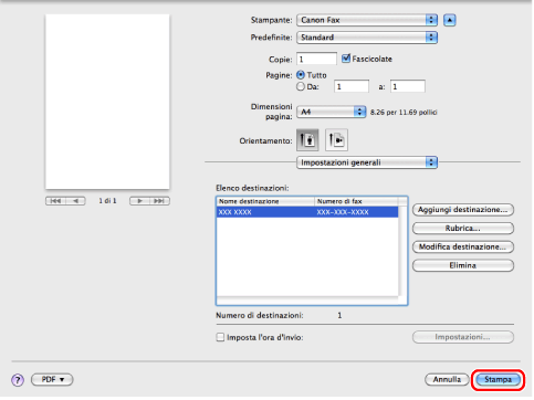La visualizzazione potrebbe variare a seconda del sistema operativo e della versione del driver del fax in uso.