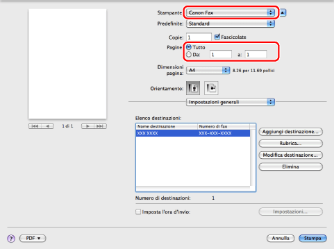 Poiché viene inviata solo una copia quando si usa il driver del fax, le impostazioni [Copie] e [Fascicola copie] vengono ignorate.