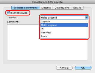 Se si desidera aggiungere una nota all'attenzione, selezionare [Inserisci avviso] → selezionare un'etichetta.