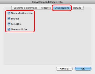 Fare clic su [Destinazione] → selezionare le voci relative al destinatario che si desidera stampare sulla copertina.