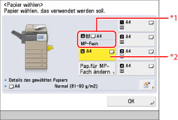 *1 Papierformat/Papiertyp, der sich momentan im Mehrzweckfach befindet