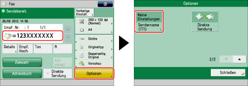 Sie können festlegen, dass der Sendername beim Empfänger auf eingehende Faxdokumente gedruckt wird.
