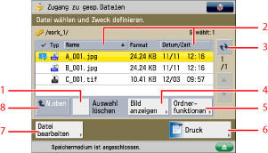 ![]() Durch Berühren dieser Taste können Sie die Inhalte auf dem Speichermedium aktualisieren.