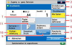 Berühren Sie diese Taste, um die Anzahl der Drucke festzulegen, wenn mehrere Dateien ausgewählt sind. Diese Taste wird nur angezeigt, wenn mehrere Dateien ausgewählt sind.