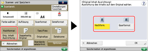 Querformat bezieht sich auf ein Original in horizontaler Ausrichtung, die kürzeren Ränder befinden sich links und rechts auf dem Original.