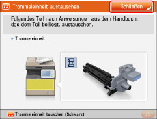 Wenn Sie die Trommeleinheit später initialisieren möchten oder wenn Sie die Trommel noch nicht ersetzt haben, berühren Sie die Taste [Nein].