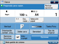 Si se ha activado [Gestión de ID de departamentos] o [Limitar funciones] para [Gestión de ID de departamentos], la pantalla de inicio puede ser diferente de la establecida para que aparezca como pantalla de inicio prefijada.