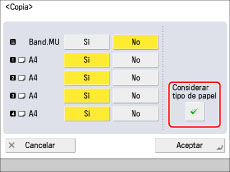 Si selecciona [Copia], puede establecer el tener en consideración el tipo de papel.