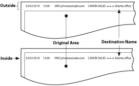 La información de ID de terminal se imprime fuera del área de imagen del papel del receptor.