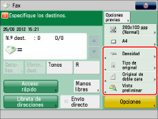 Pulse [Opciones de funciones] → [Enviar] → [Opciones de fax].