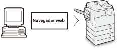 Desde el navegador web de su ordenador puede controlar funciones tales como confirmar el estado del equipo y las operaciones con trabajos.