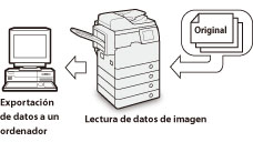 Puede convertir los datos de documentos leídos a formatos de archivo (PDF, JPEG, TIFF, XPS, OOXML) a los que se puede acceder desde el ordenador y guardar los datos en una ubicación de red o un dispositivo de memoria. Los archivos guardados también pueden imprimirse desde el equipo.