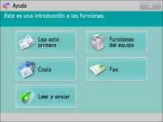 Al pulsar [Ayuda] en la pantalla Menú principal aparece la pantalla de aprendizaje de este equipo.
