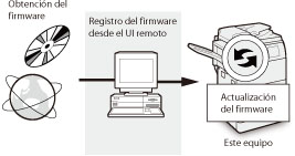 Puede actualizar el firmware del equipo a la versión más reciente con la función "Registrar/Actualizar software" de la IU remota.