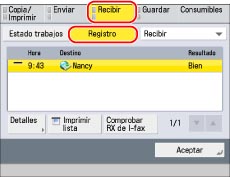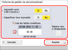 Si está desactivada la opción [Mostrar registro] en [Opciones de gestión] (Configuración), no aparece [Informe de gestión de comunicaciones].