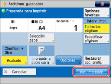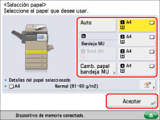 Si aparece la pantalla de selección de papel, seleccione el tipo del papel → pulse [Aceptar].