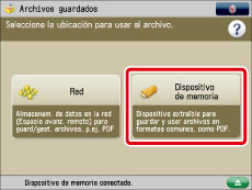 Una vez terminada la impresión, el equipo vuelve a la pantalla de selección de dispositivos de memoria.