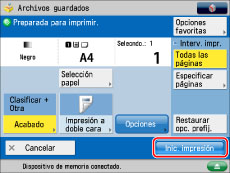 Especifique las opciones de impresión en la pantalla de opciones de impresión → pulse [Inic. impresión].