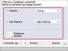 El texto que introduzca en [Person.] no se guarda automáticamente. Si desea guardar texto para seleccionarlo con las filigranas cuando lo necesite, pulse [Guardar] → introduzca el texto que desee guardar.