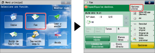 Puede guardar una serie de opciones de destino, lectura, o envío especificadas antes de pulsar