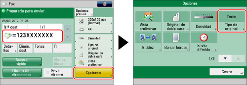 Especifique el destino → pulse [Opciones] → [Tipo de original].