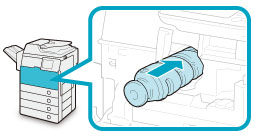 Sujete el cartucho de tóner nuevo con una mano por debajo mientras lo introduce en el equipo con la otra mano.