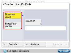 Si introduce '0' en [Longitud de prefijo], se establecerán todas las direcciones IPv6.