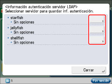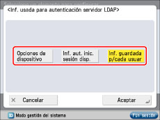 Utiliza la información de autenticación establecida en [Guardar servidor LDAP]. (Consulte "Guardar un servidor LDAP".) No se requieren más ajustes para cada usuario.