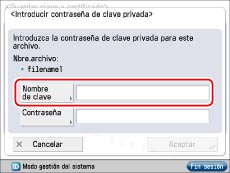 Introduzca el nombre de la clave privada → pulse [Aceptar].