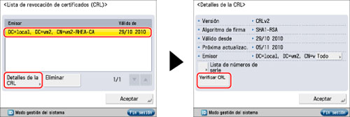 Para conocer las instrucciones acerca de cómo instalar una lista de revocación de certificados, consulte "Instalar un archivo de certificado".
