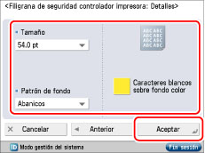 Si se establecen simultáneamente [Filigrana de seguridad controlador impresora] y [Filigrana de seguridad obligatoria] para una impresora, tendrá prioridad Filigrana de seguridad obligatoria.