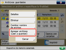 Pulse [Agregar archivos (Leer y guardar)].