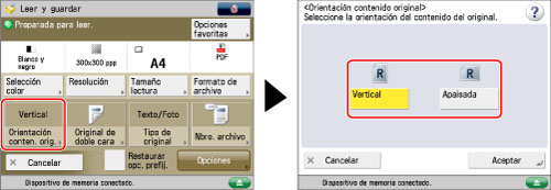Hace referencia a un original con orientación horizontal: los bordes más cortos están en la parte izquierda y derecha del original.