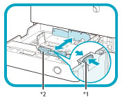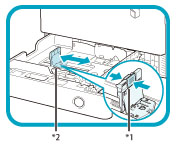 Apriete la palanca de la guía lateral. Sin soltar la palanca, deslice la guía lateral hacia la izquierda o hacia la derecha para alinearla con la marca correspondiente al tamaño de papel que desee.