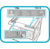 Seleccione la etiqueta del idioma que desee entre las etiquetas de precaución suministradas, despegue la etiqueta y péguela en la parte indicada en la ilustración.