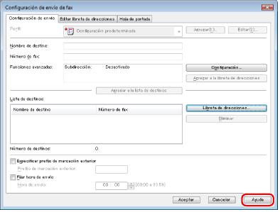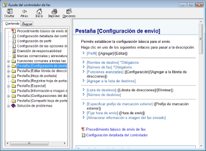 Puede mostrar la ayuda en línea haciendo clic en [Ayuda] en la pantalla del controlador de fax.