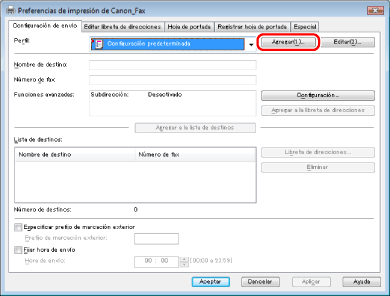 Consulte "Especificar las opciones de fax prefijadas" para obtener información sobre cómo mostrar la pantalla del controlador del fax.