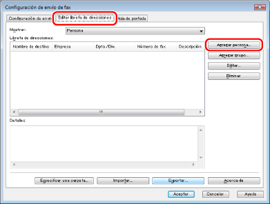 También puede editar direcciones de destinatarios individuales que haya registrado previamente. Para obtener más información, haga clic en [Ayuda] en la esquina inferior derecha de la ventana del controlador de fax y verá la ayuda en línea.