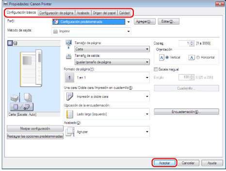 Para cambiar las opciones de impresión prefijadas, debe iniciar sesión en el ordenador como miembro del grupo de administradores.